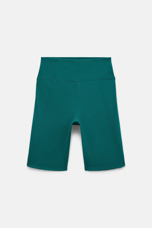 Compressive, high-rise bike shorts with an 8.5” inseam. Ride up-resistant, down for whatever.
