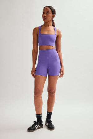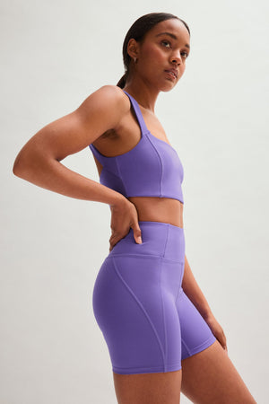 Sweat-wicking, sheer-proof compressive shorts with an ultra-high rise and a 4.75” inseam.