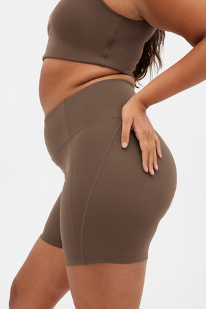 Sweat-wicking, sheer-proof compressive shorts with an ultra-high rise and a 4.75” inseam.