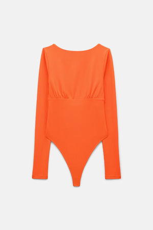 A balletcore FLOAT bodysuit for dancey workouts and every day styling. Complete with long sleeves, support band, and a deep u-back so you can move easy.