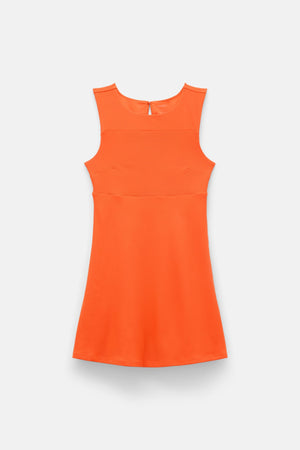 A FLOAT mini dress that moves with you thanks to a built-in romper for coverage and support, directional ribbing for extra contour, and a keyhole back for an elegant, unrestrictive finish.