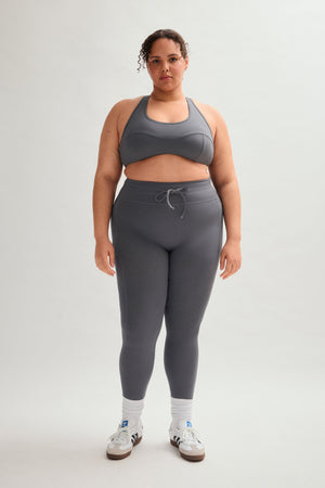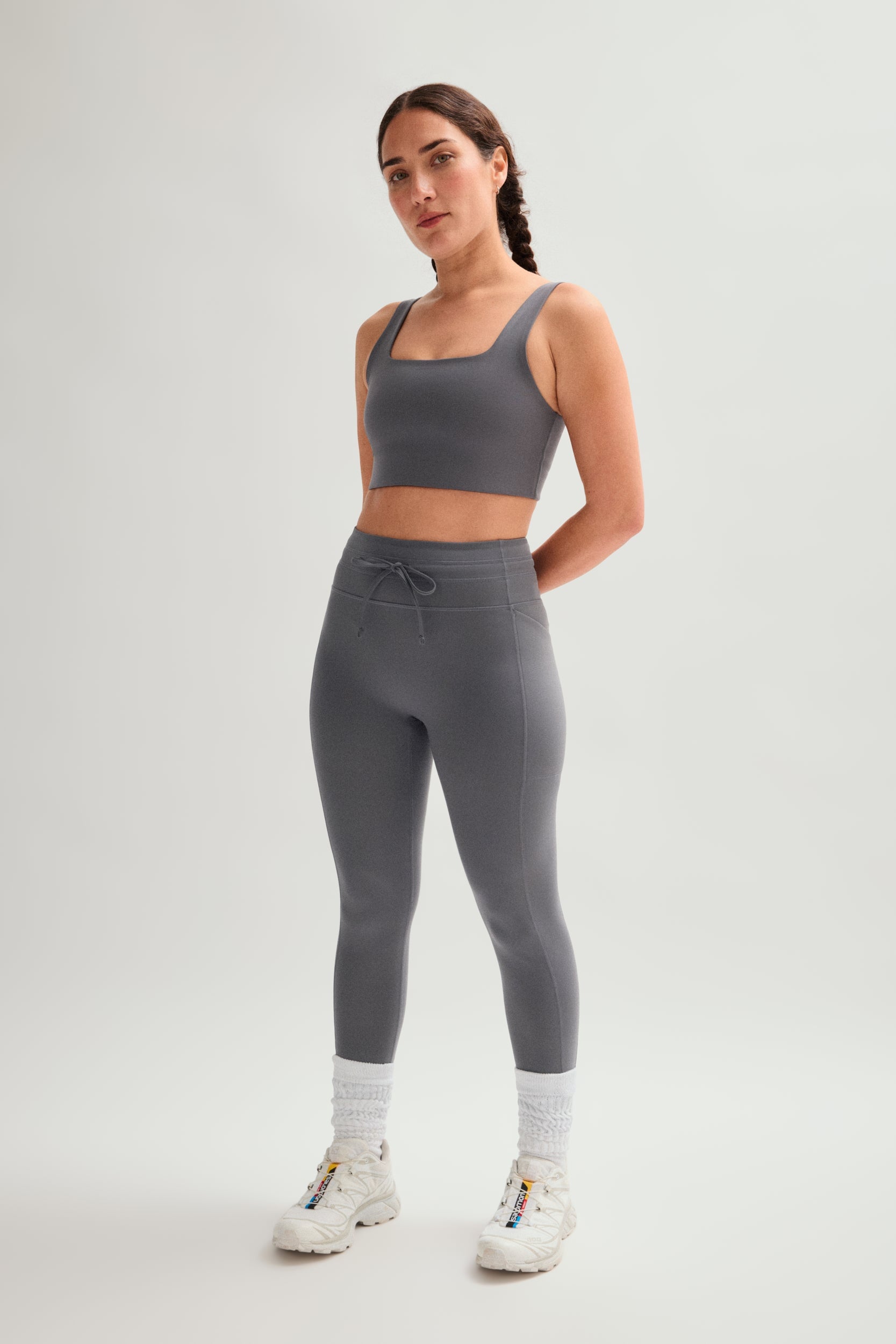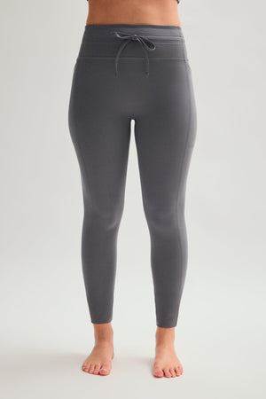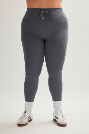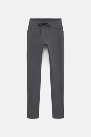 Ultra-secure compressive leggings ideal for runners, with a drawstring waist, side pockets, and contouring back seams.