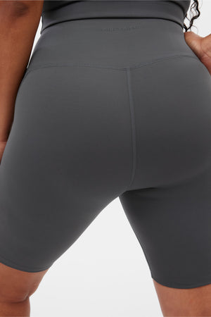 Compressive, high-rise bike shorts with an 8.5” inseam. Ride up-resistant, down for whatever.