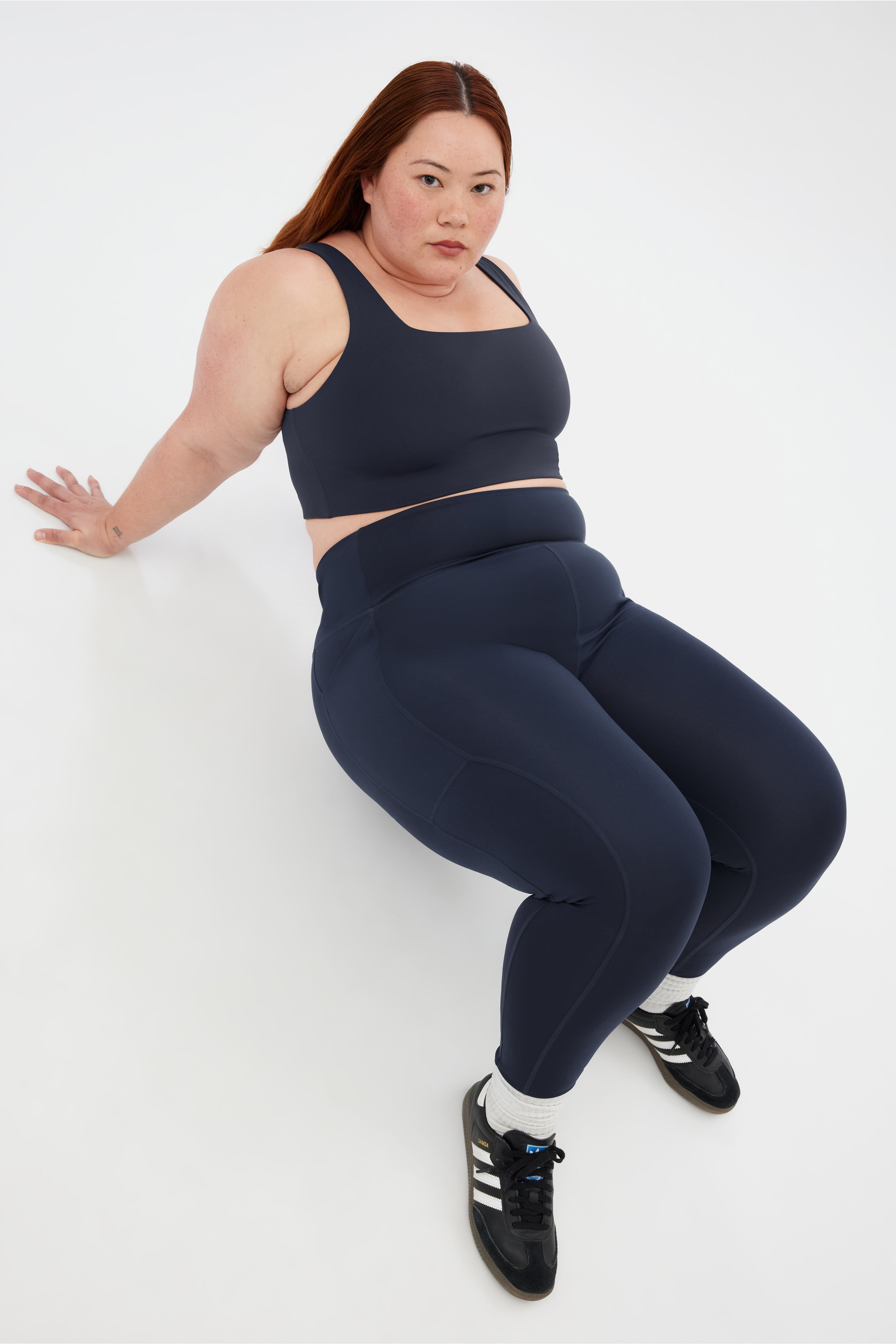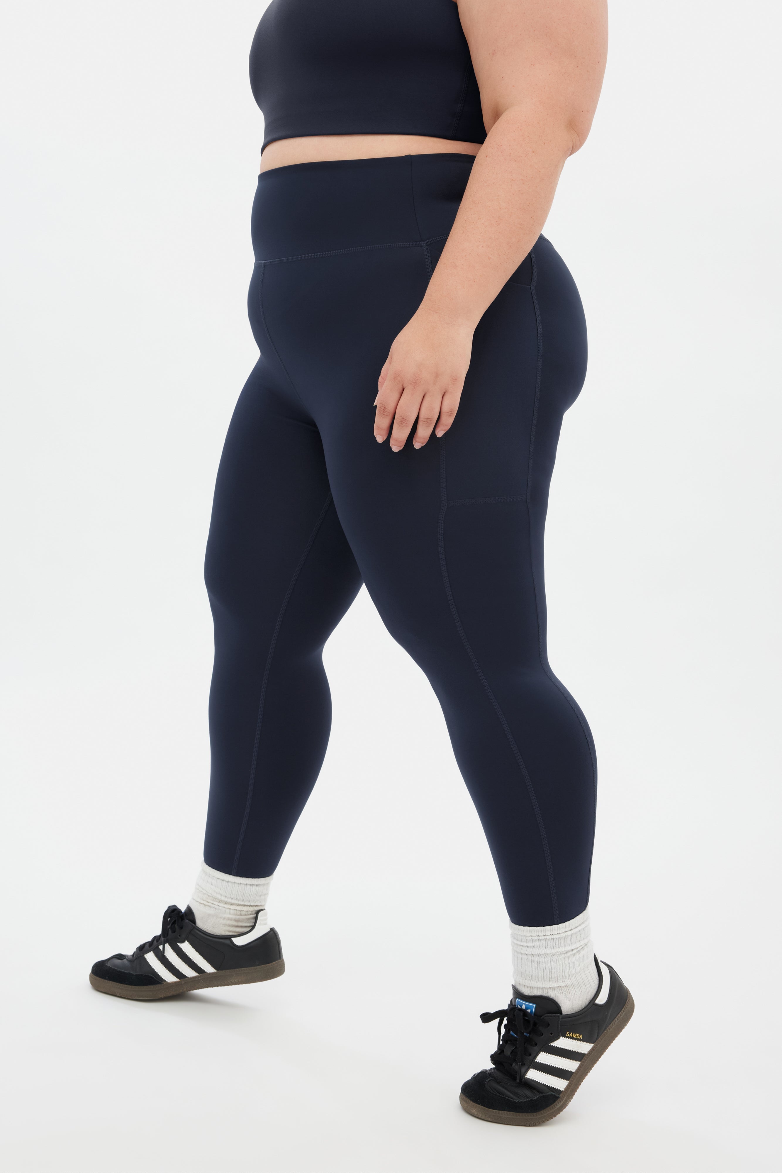 Compressive, squat-proof, ultra-high rise leggings with dual side pockets.