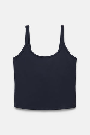 A staple Compressive full length tank designed with an open scoop neck and a built-in bra to keep you comfortable and supported.