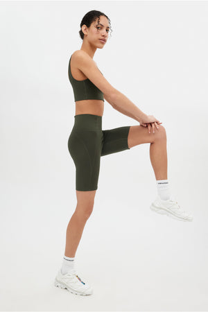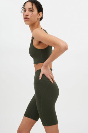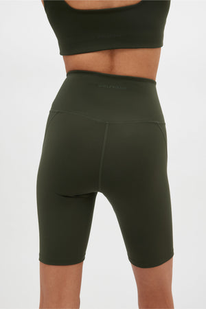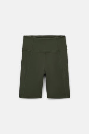 Compressive, high-rise bike shorts with an 8.5” inseam. Ride up-resistant, down for whatever.