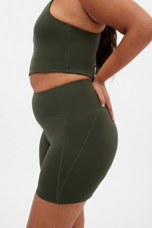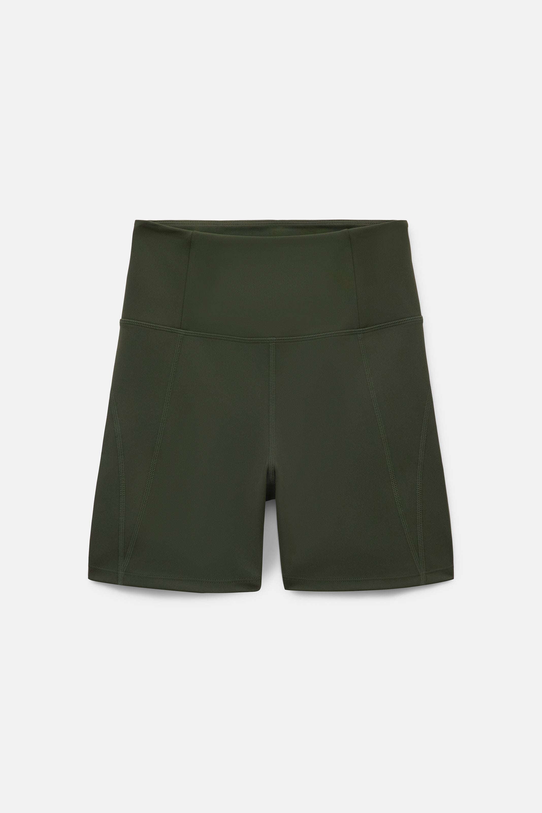 Sweat-wicking, sheer-proof compressive shorts with an ultra-high rise and a 4.75” inseam.