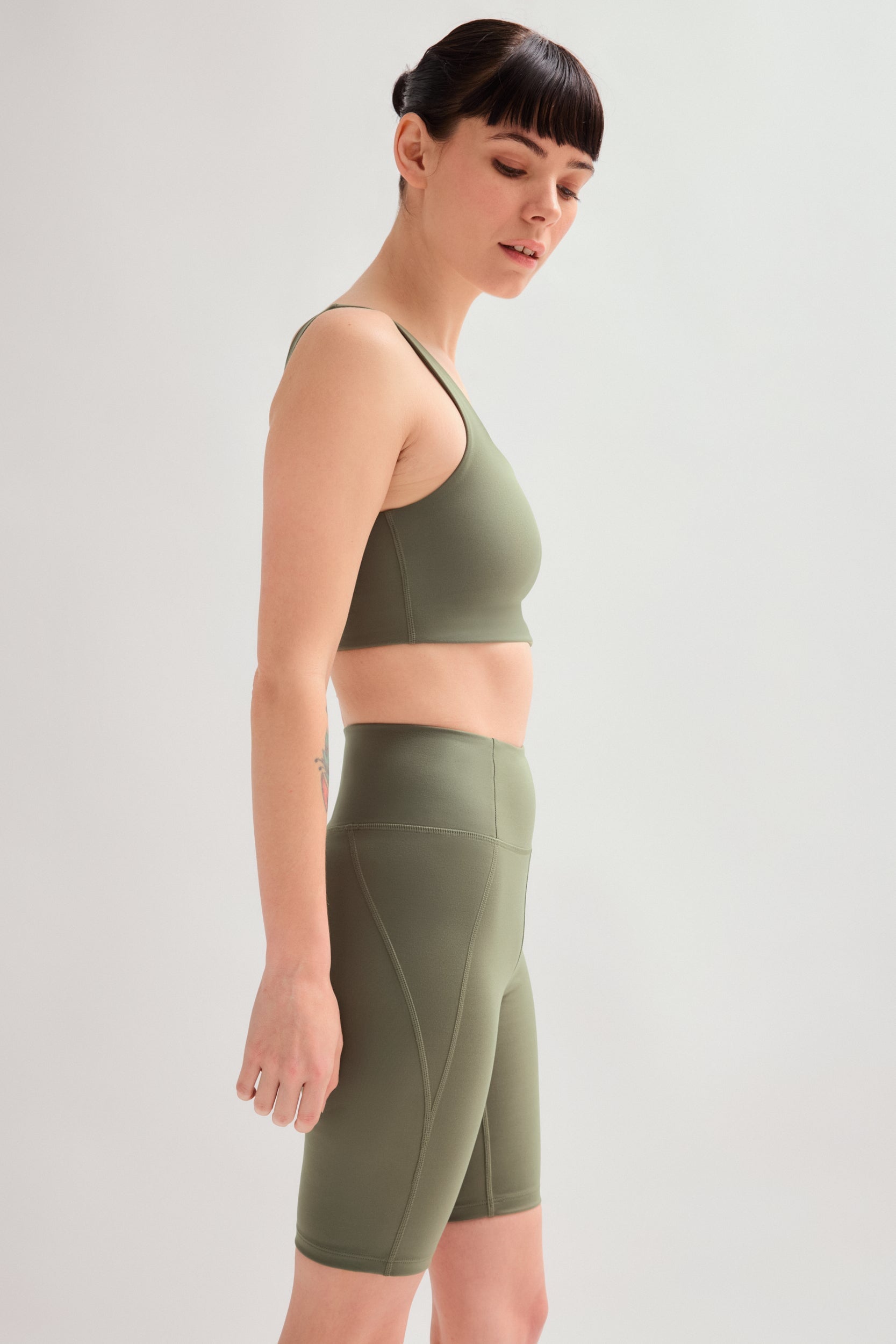 Compressive, high-rise bike shorts with an 8.5” inseam. Ride up-resistant, down for whatever.