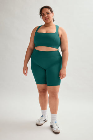 Compressive, high-rise bike shorts with an 8.5” inseam. Ride up-resistant, down for whatever.