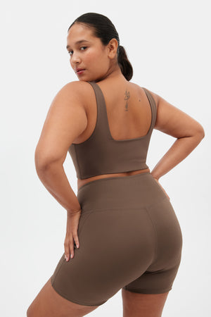 Sweat-wicking, sheer-proof compressive shorts with an ultra-high rise and a 4.75” inseam.