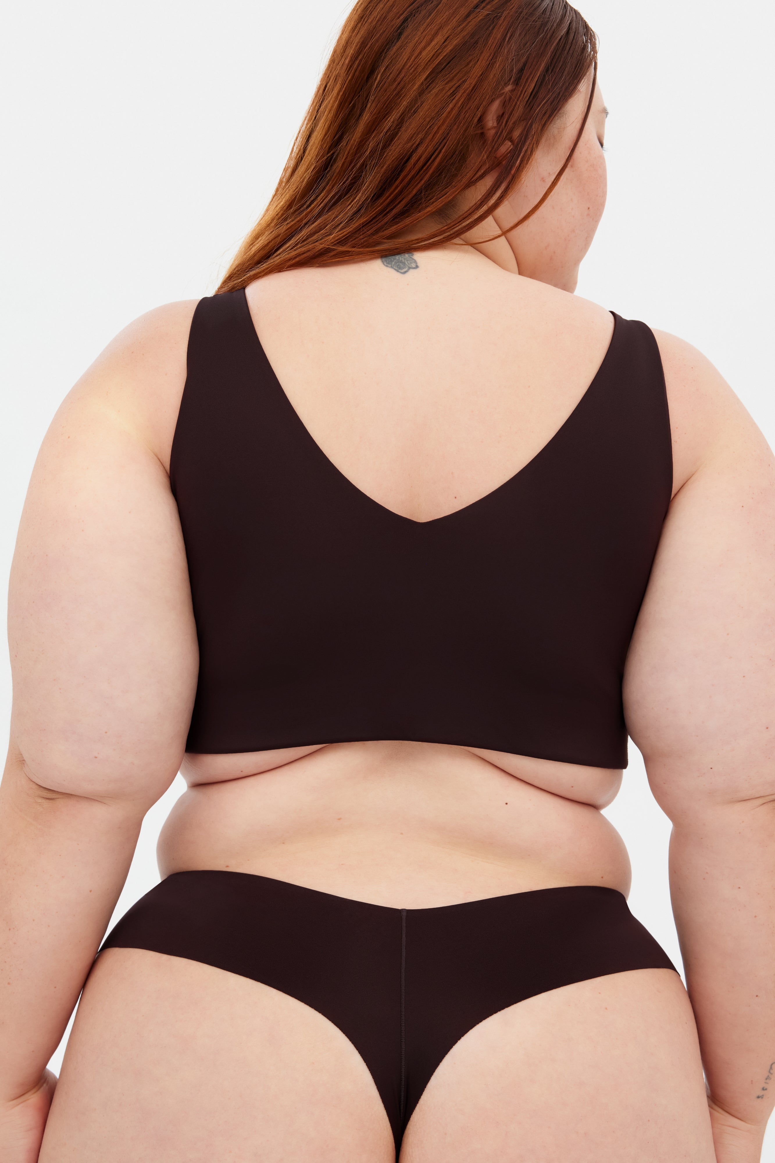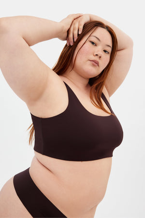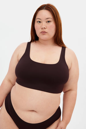 A scoop neck, low back bralette for lounging, watching sh*tty TV and other inactivities.