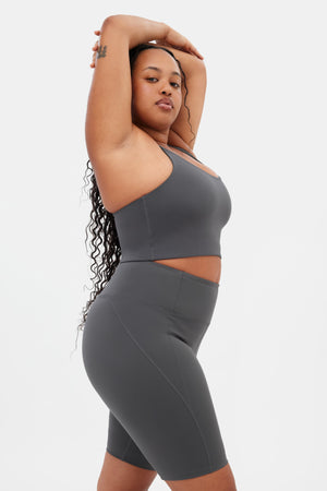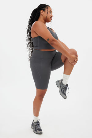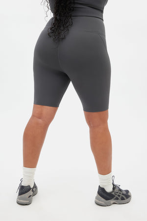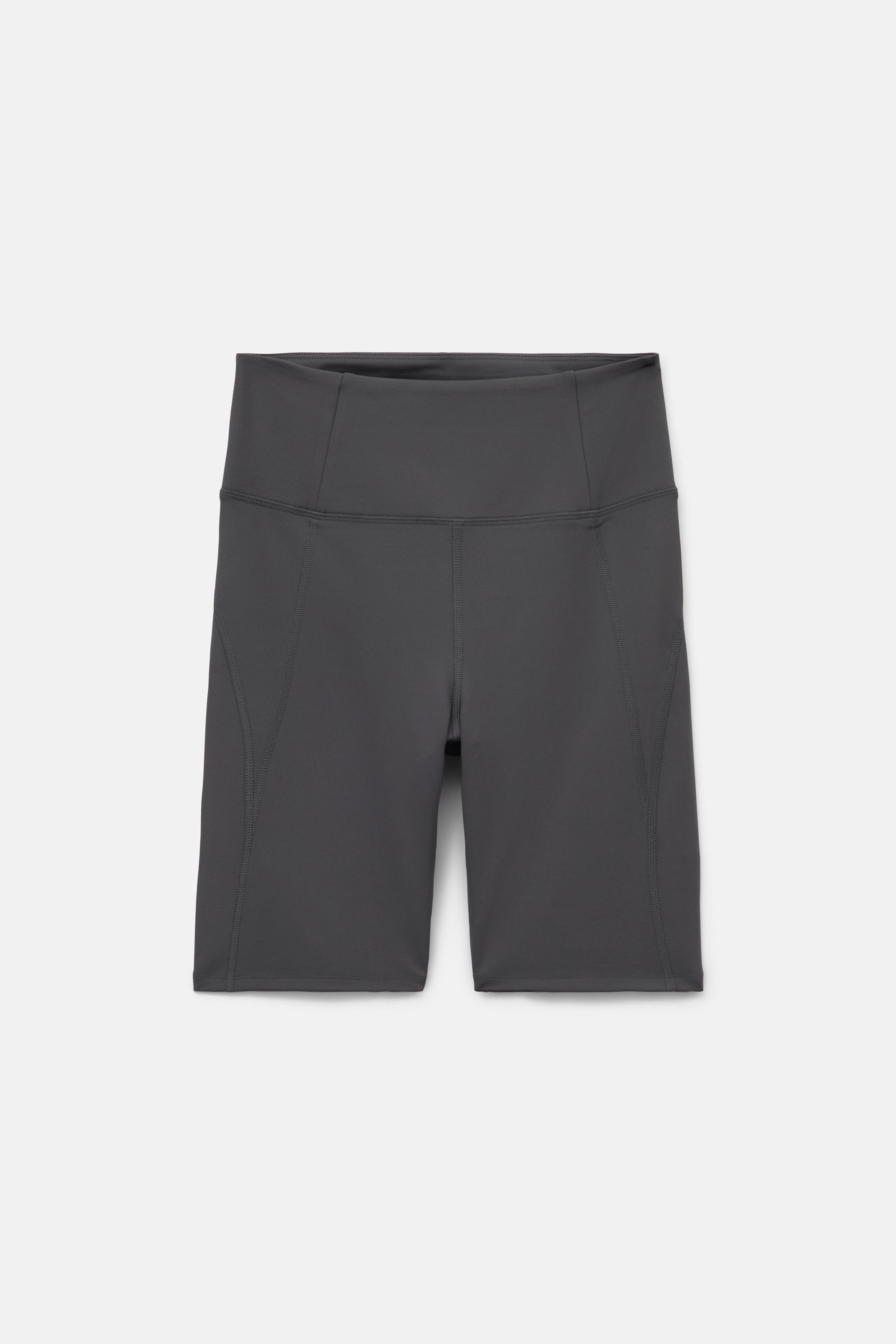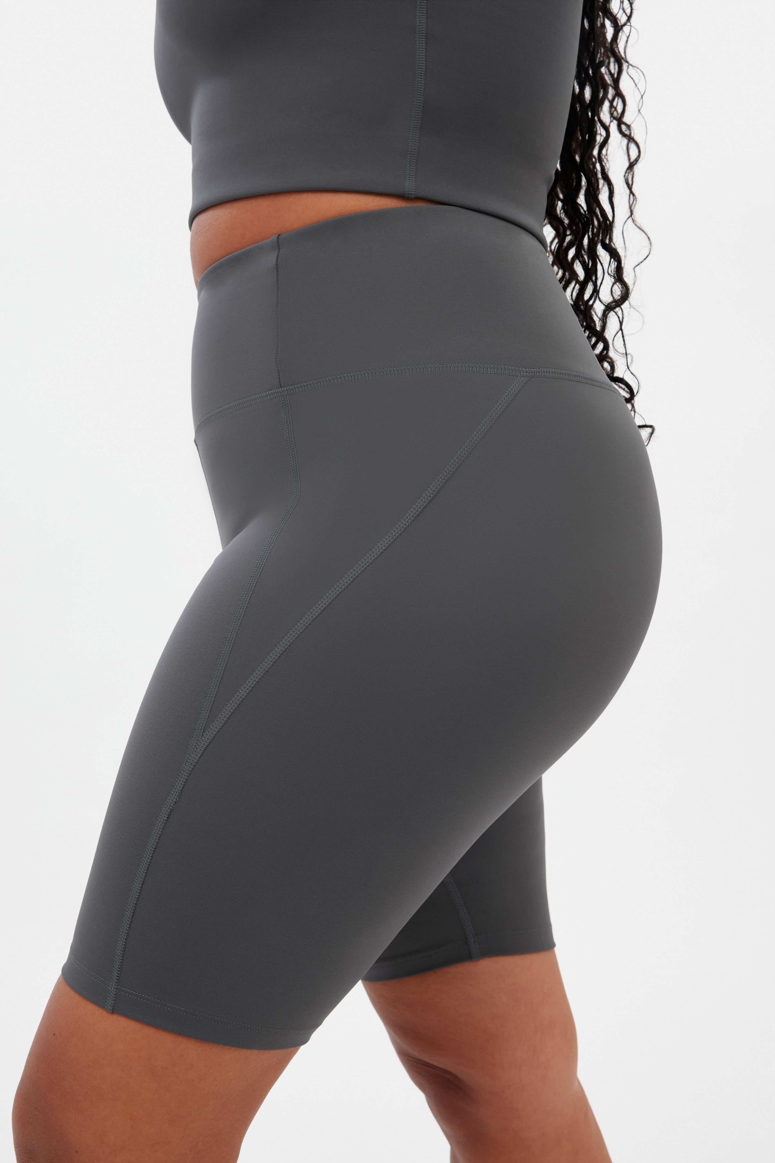 Compressive, high-rise bike shorts with an 8.5” inseam. Ride up-resistant, down for whatever.