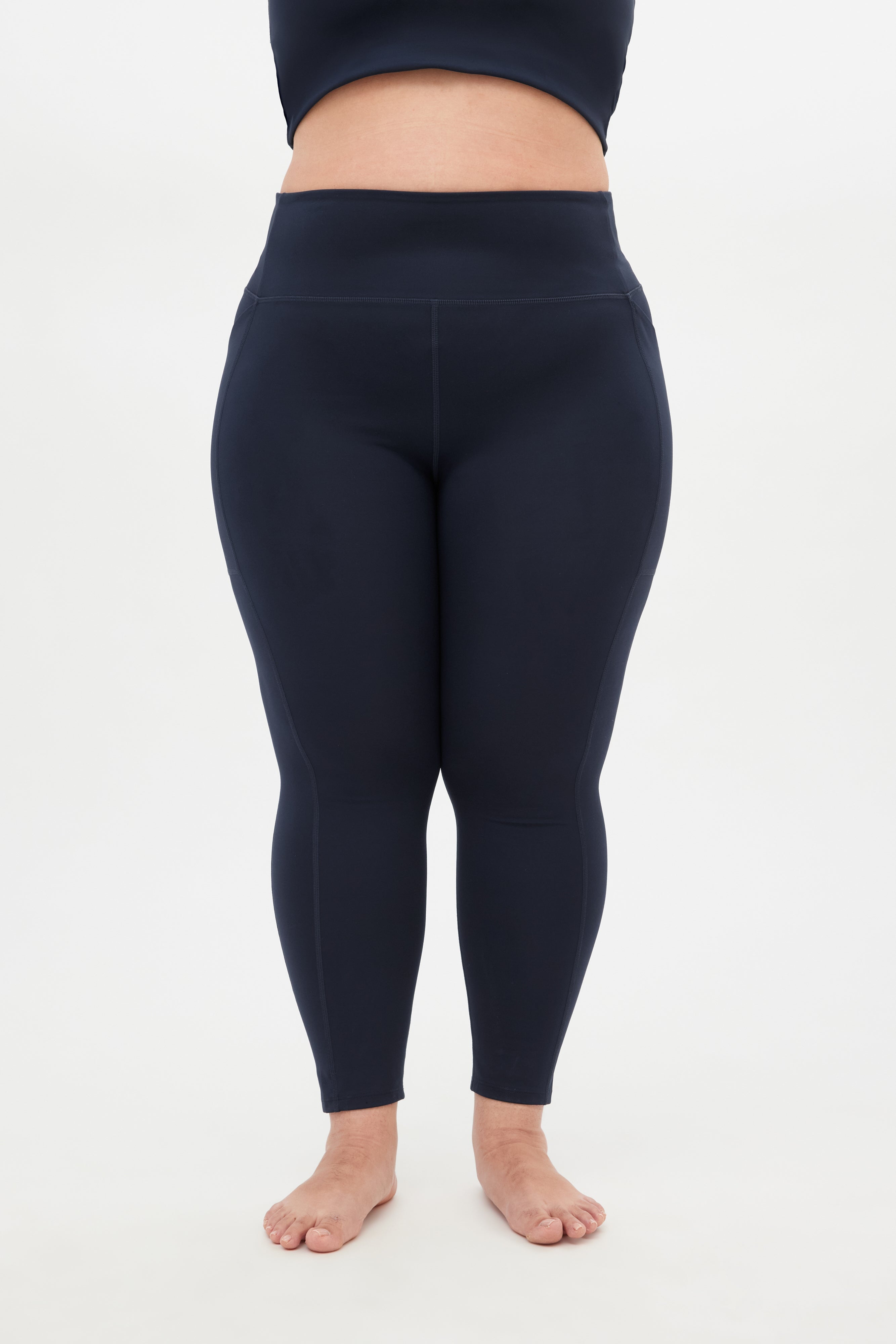 Compressive, squat-proof, ultra-high rise leggings with dual side pockets.