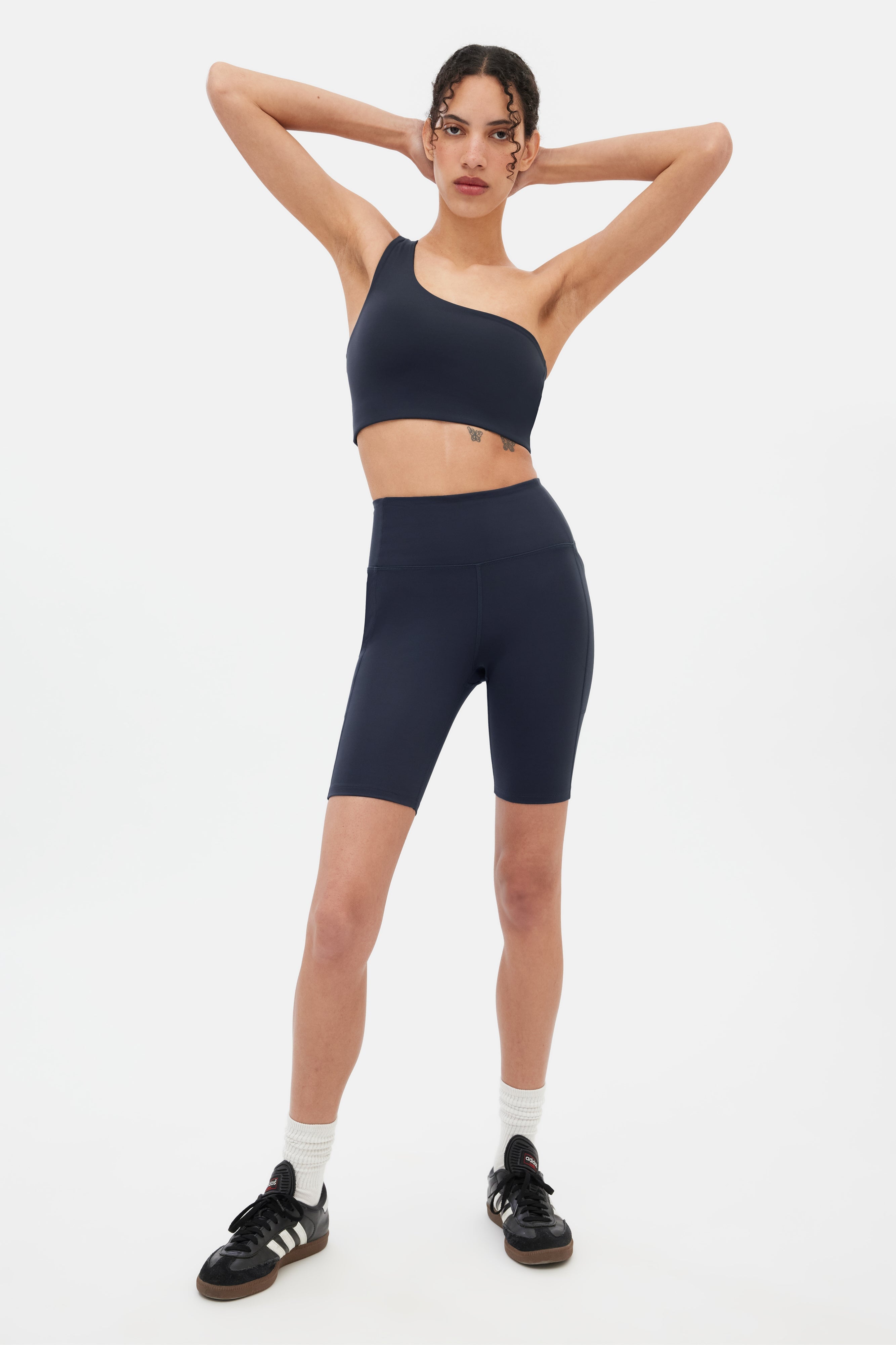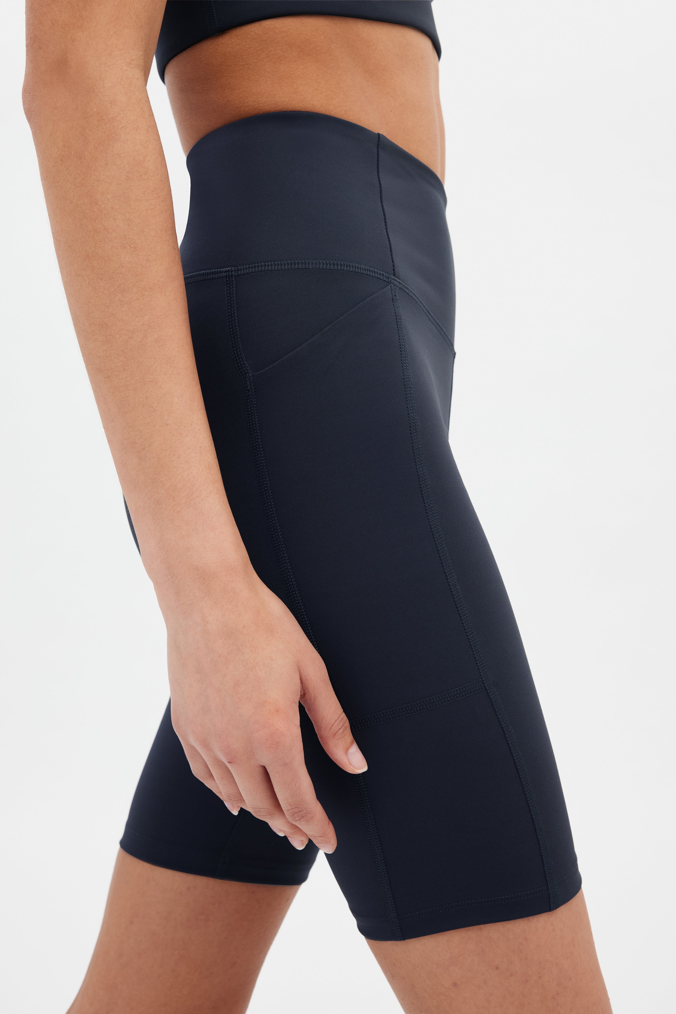 Compressive bike shorts that have a high rise, 8.5” inseam, and you guessed it — pockets.
