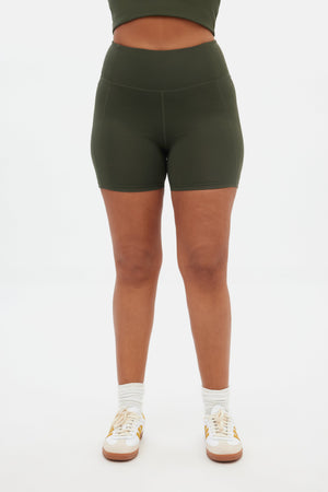 Sweat-wicking, sheer-proof compressive shorts with an ultra-high rise and a 4.75” inseam.